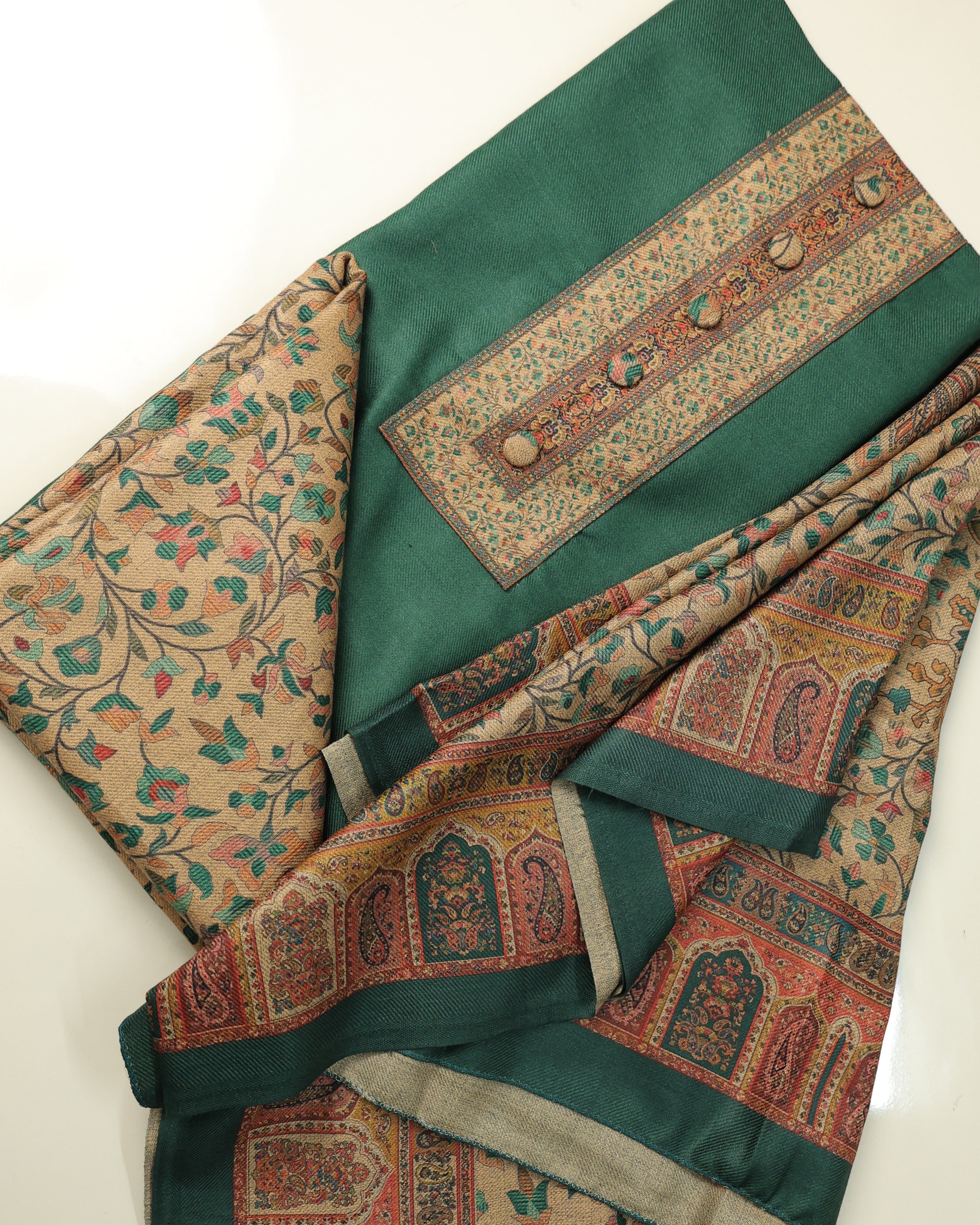• Kurta Fabric: Soft woolen blend with Kashmiri-inspired prints on the neckline and hem