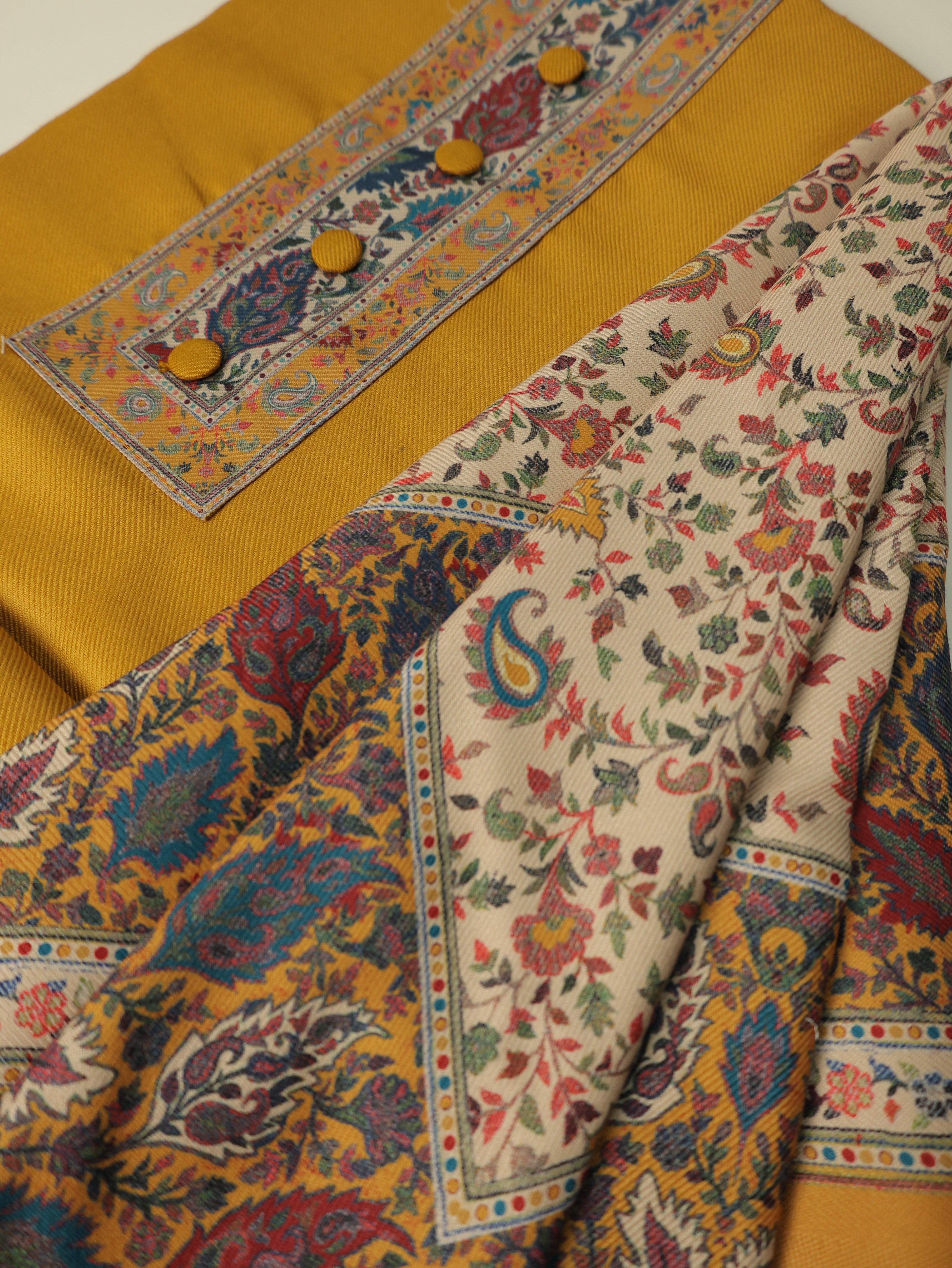 • Kurta Fabric: Soft woollen blend with Kashmiri-inspired prints on the neckline and hem