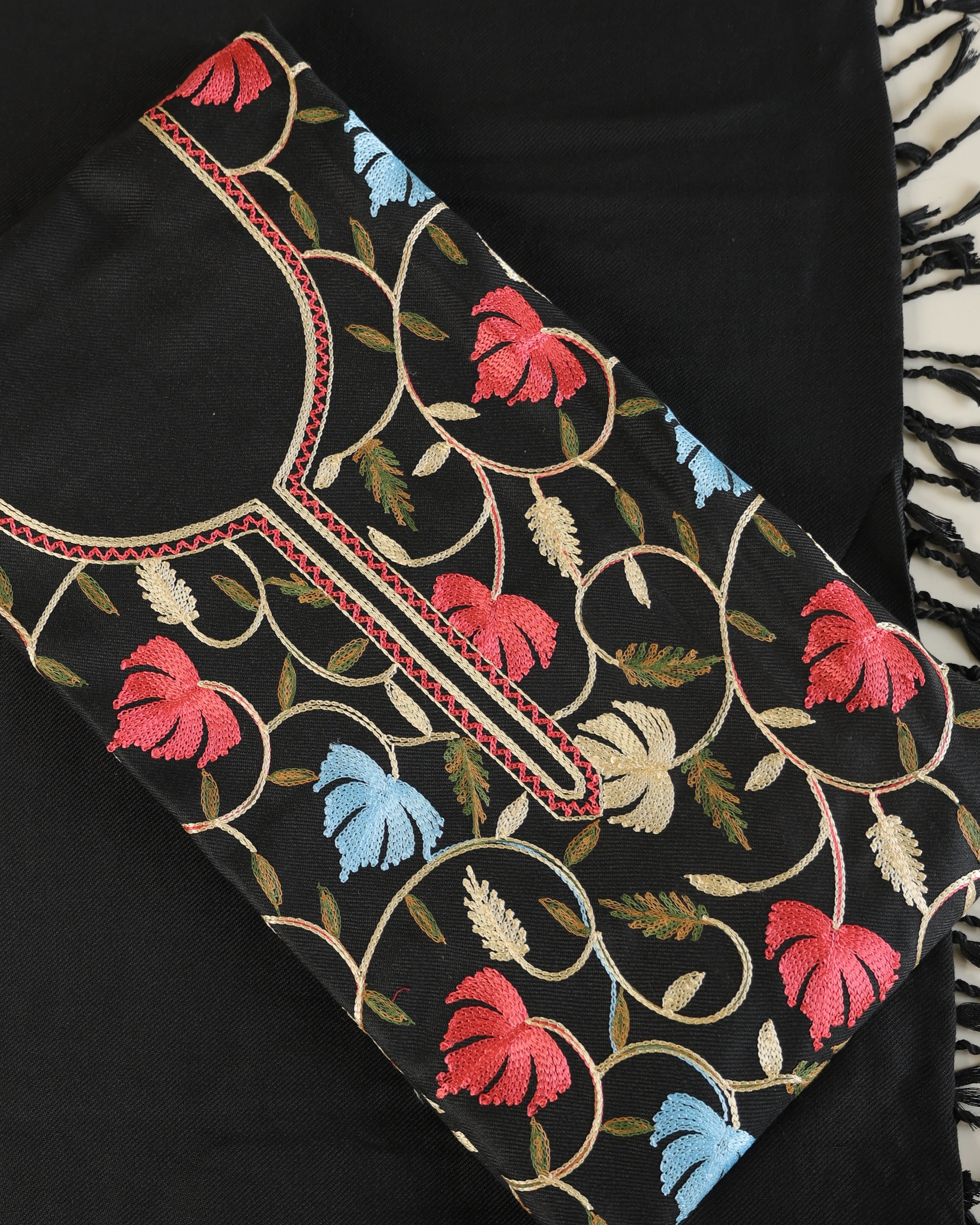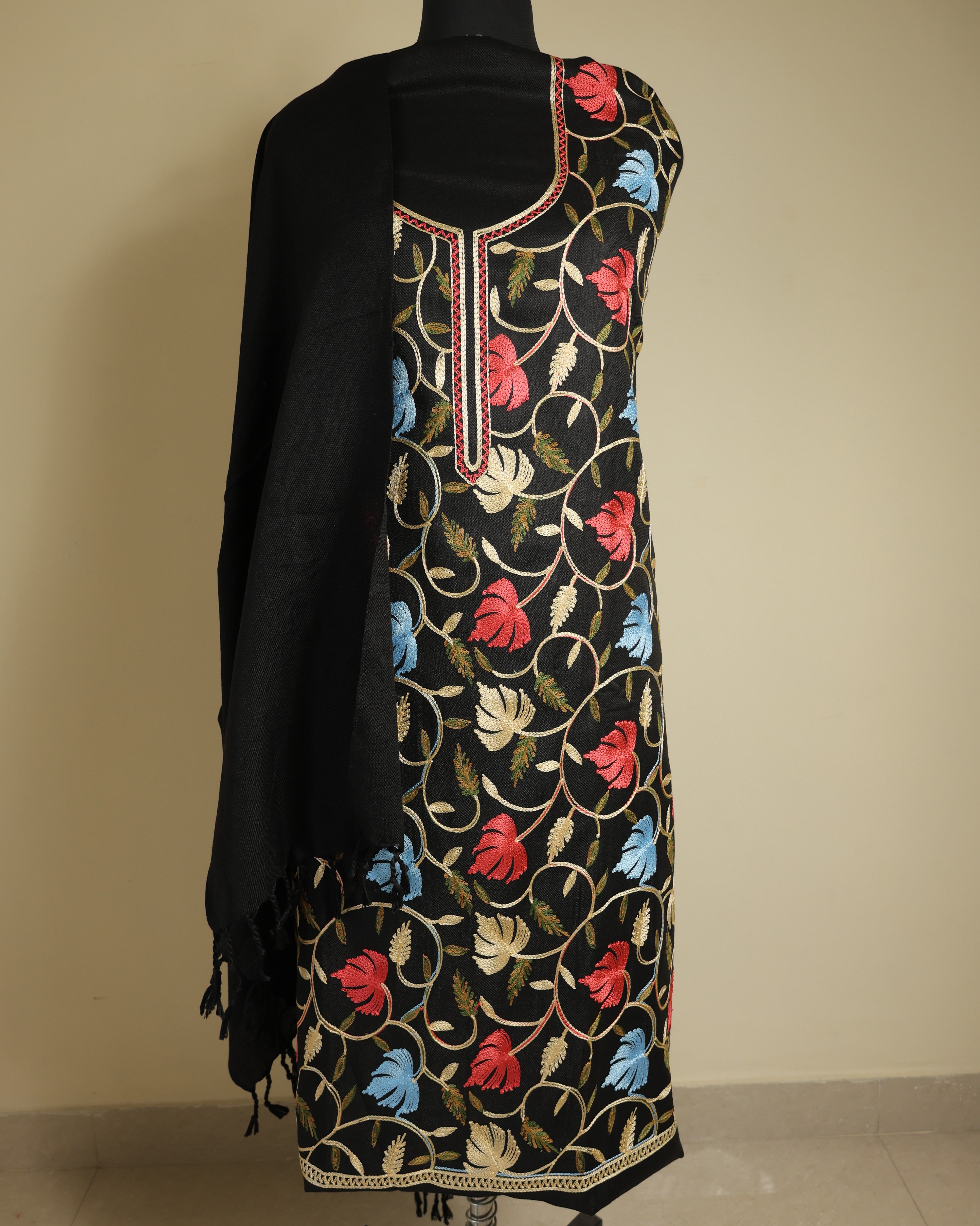 • Kurta Fabric: Soft woolen blend with Aari embroidery in front panel and neck