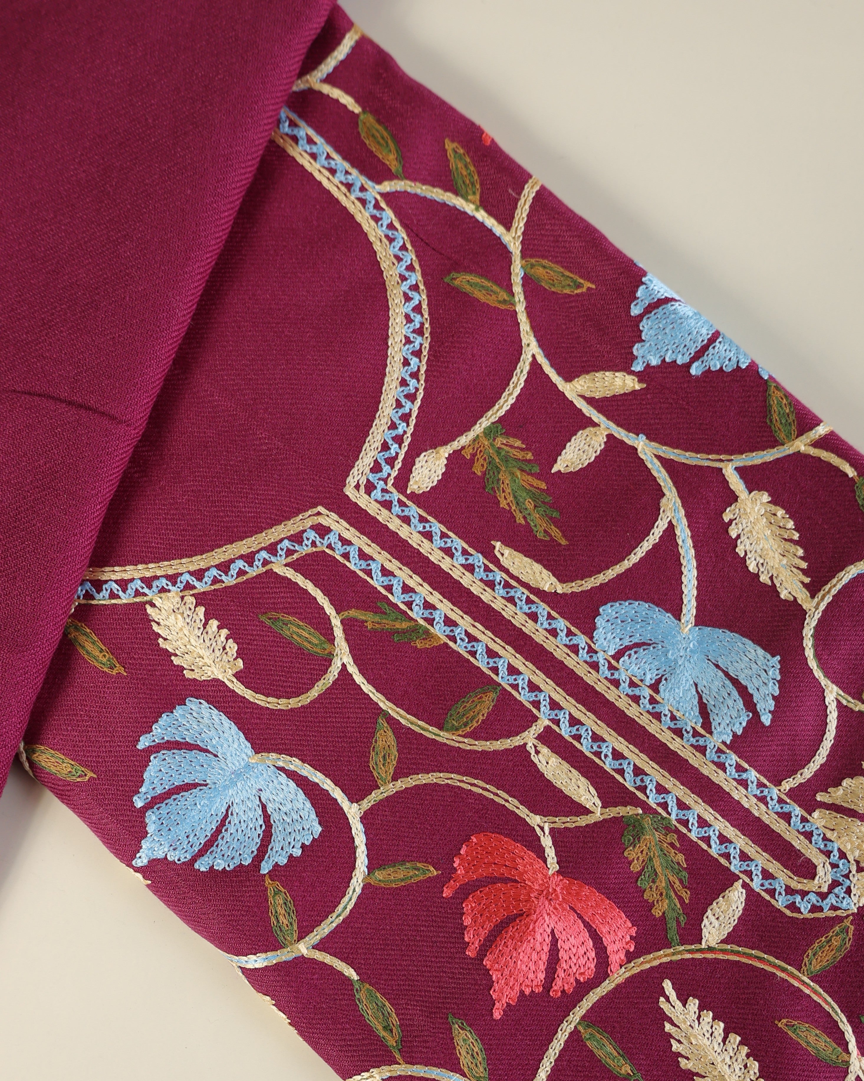 Gulnar – Kashmiri Inspired Aari Work Unstitched 3-Piece Suit Set (MAROON)