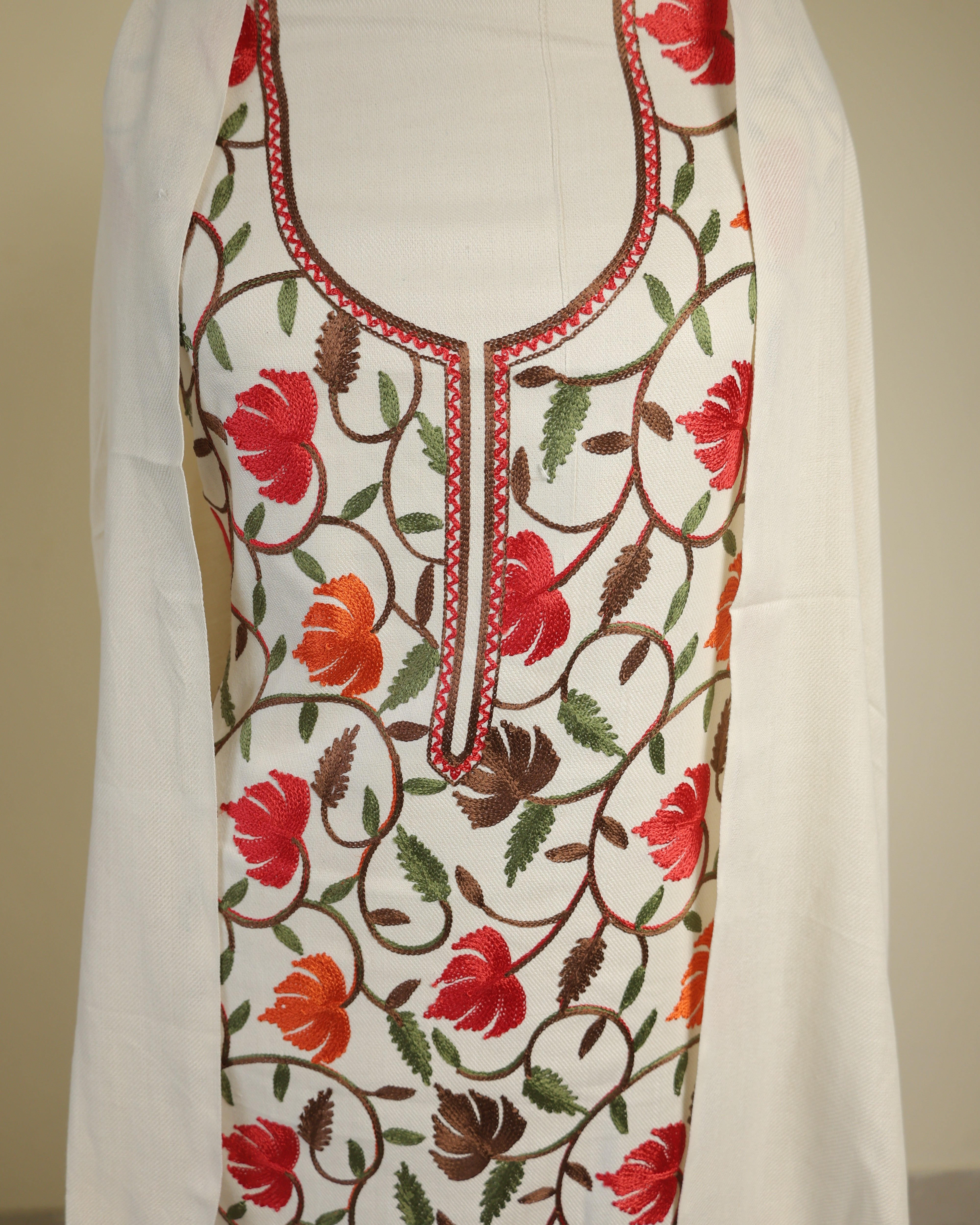 Kurta Fabric:  Soft woolen blend with Aari embroidery in front panel and neck