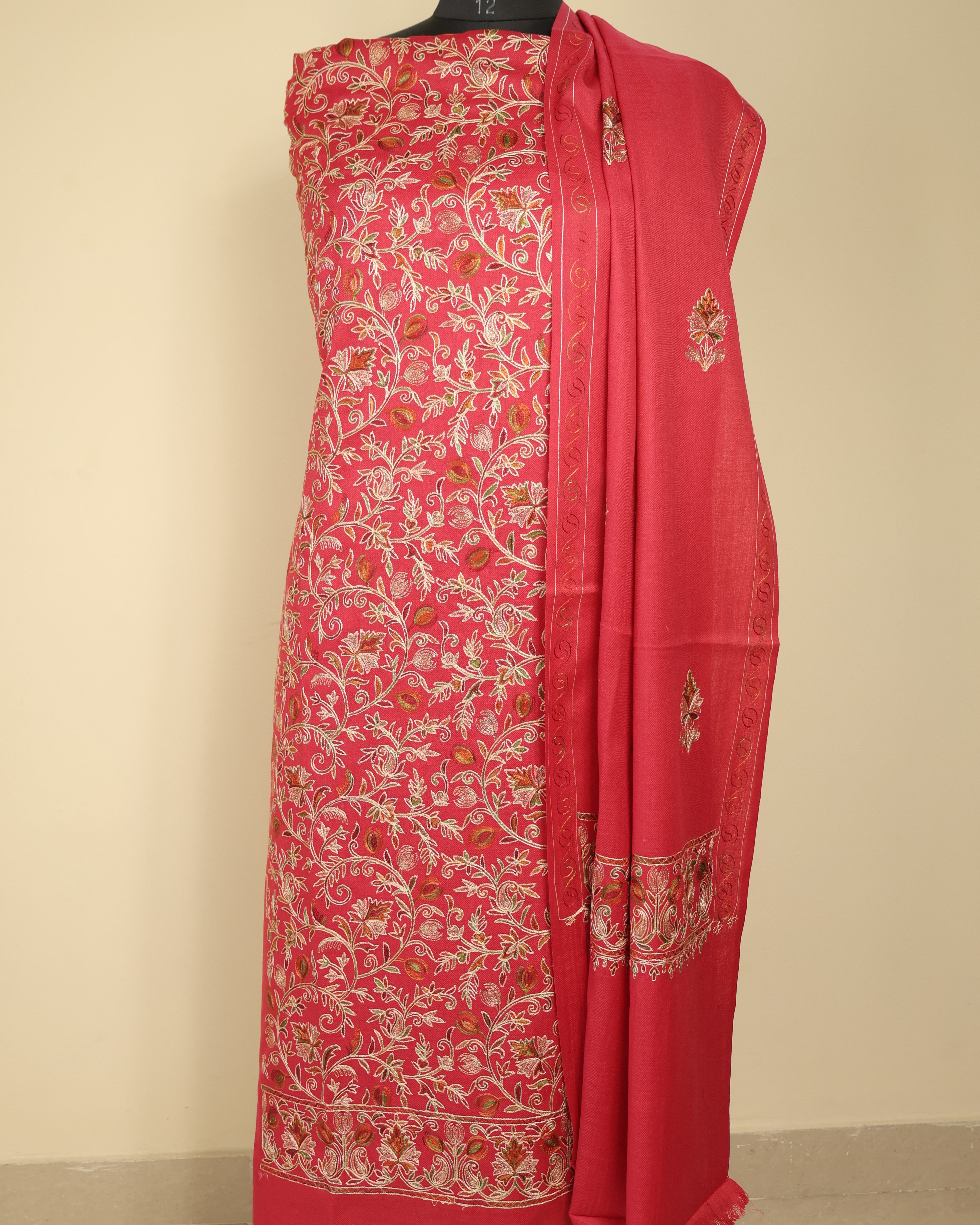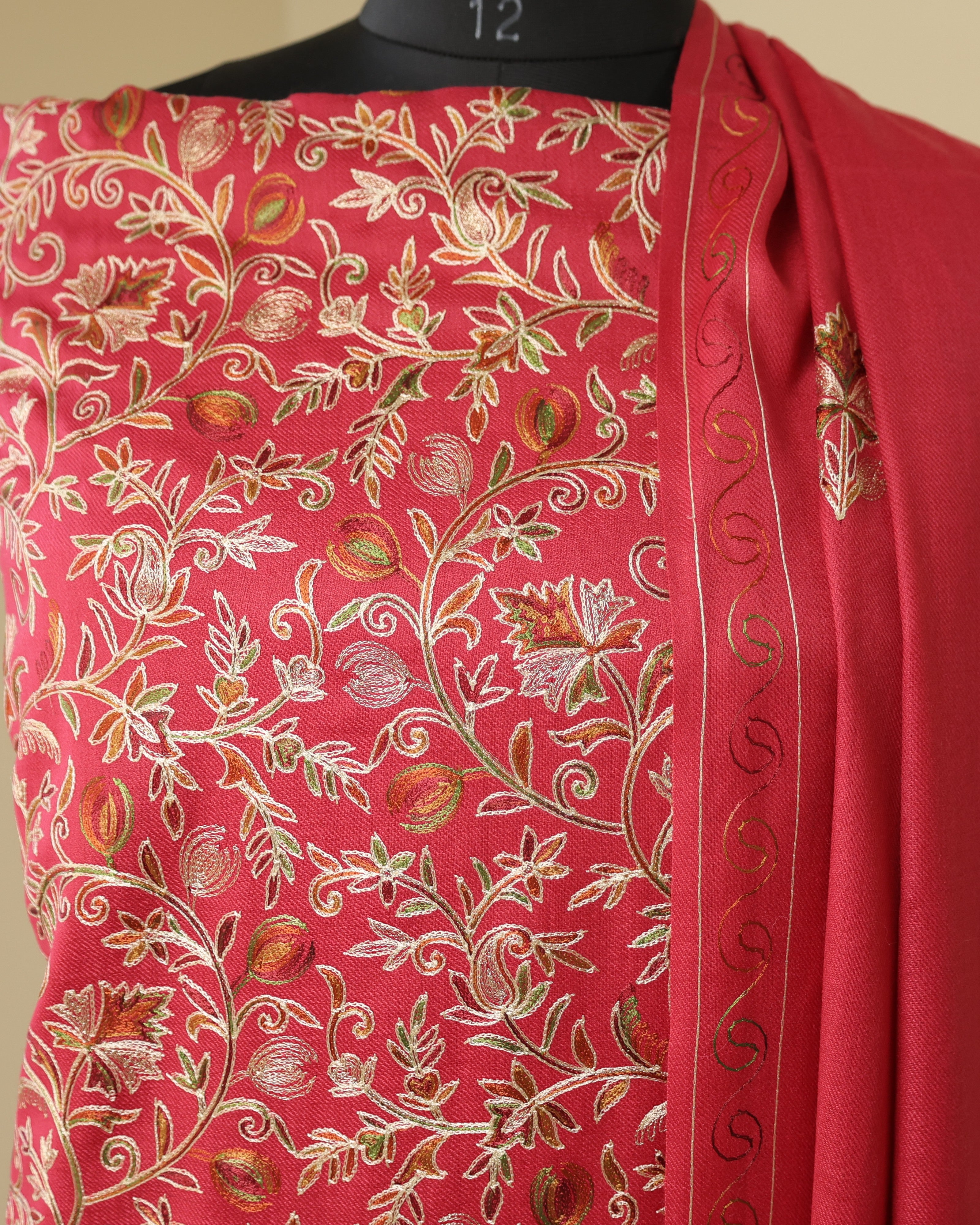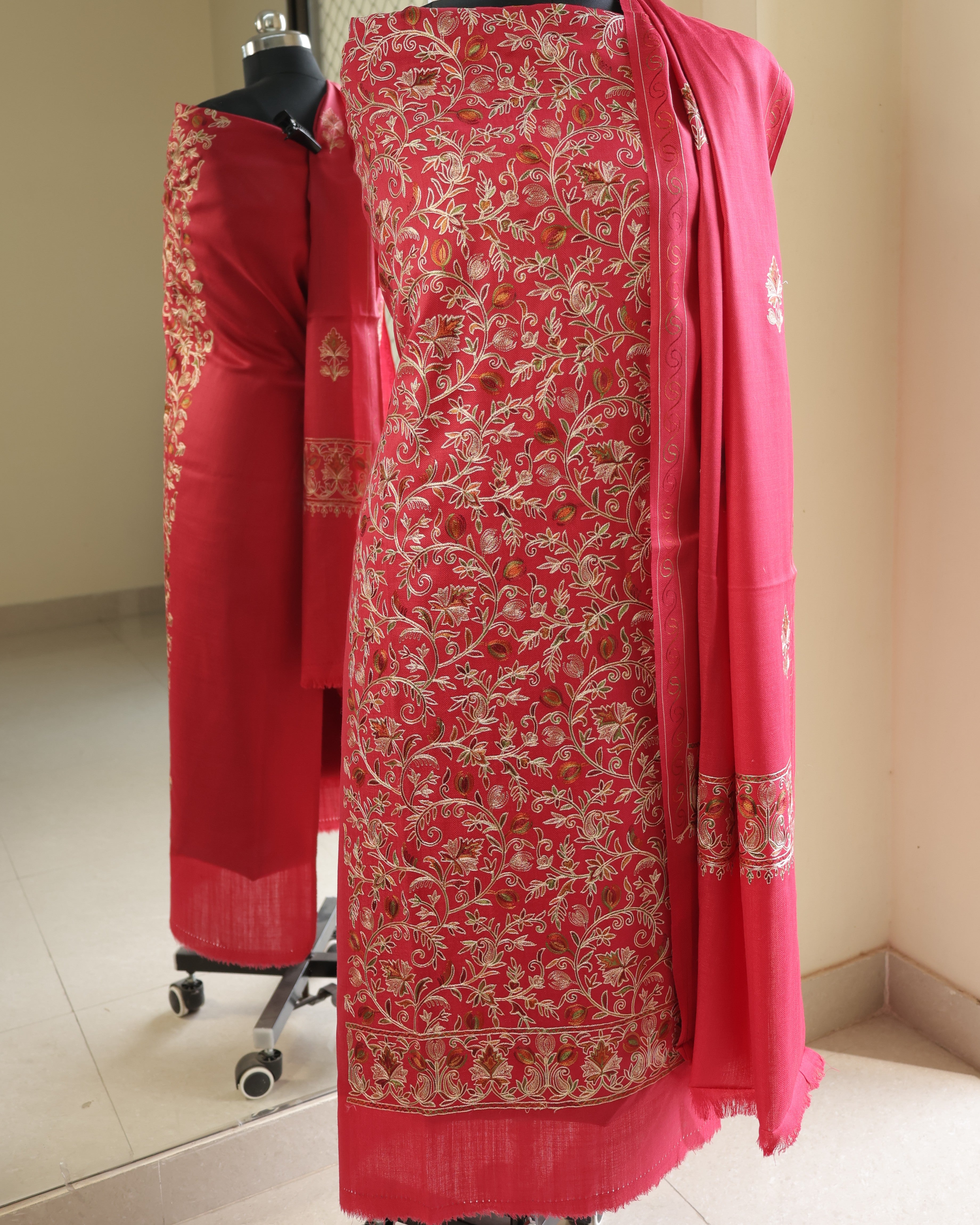 • Dupatta Fabric: Semi Pashmina with matching multicolored Aari motifs