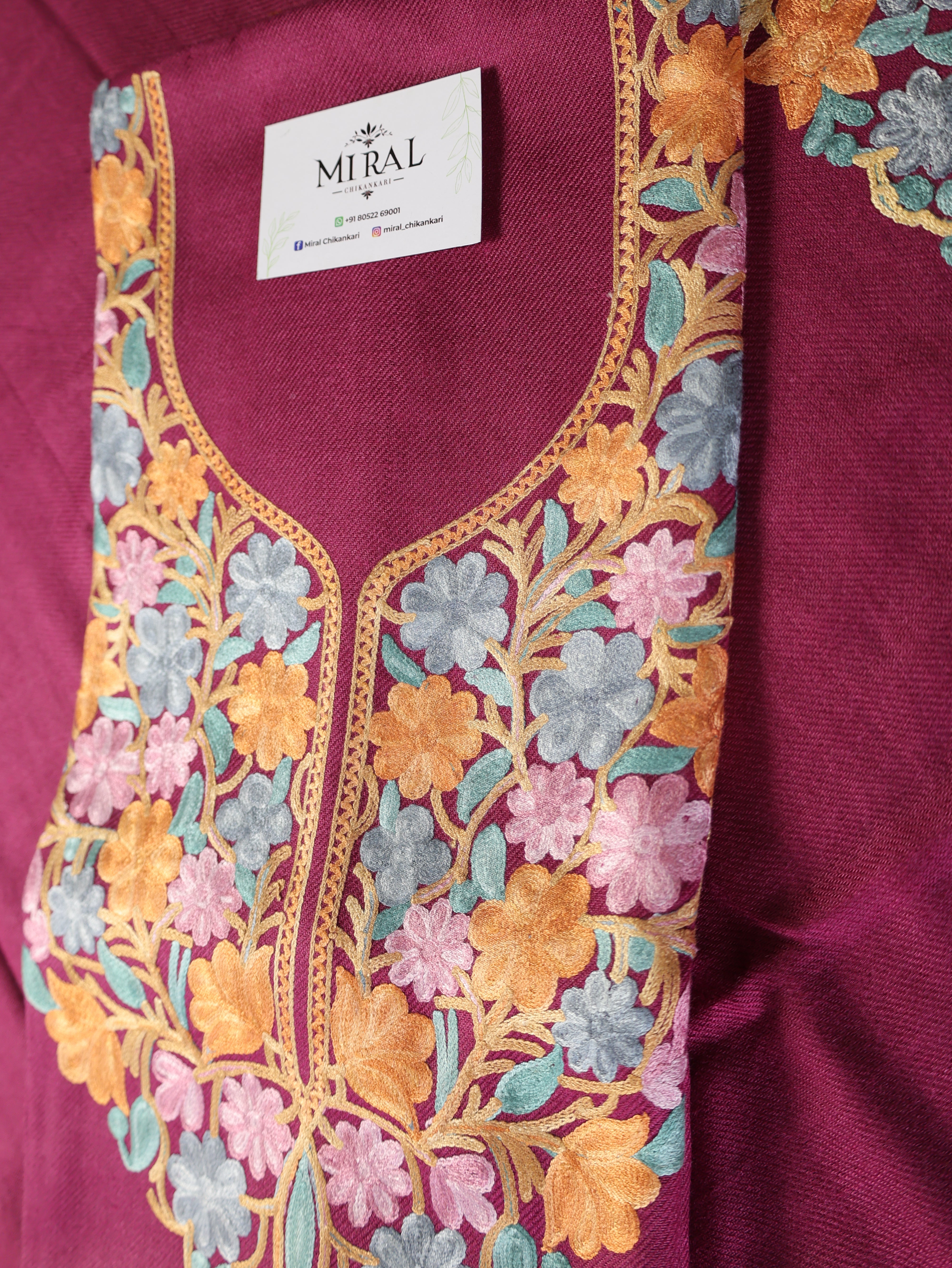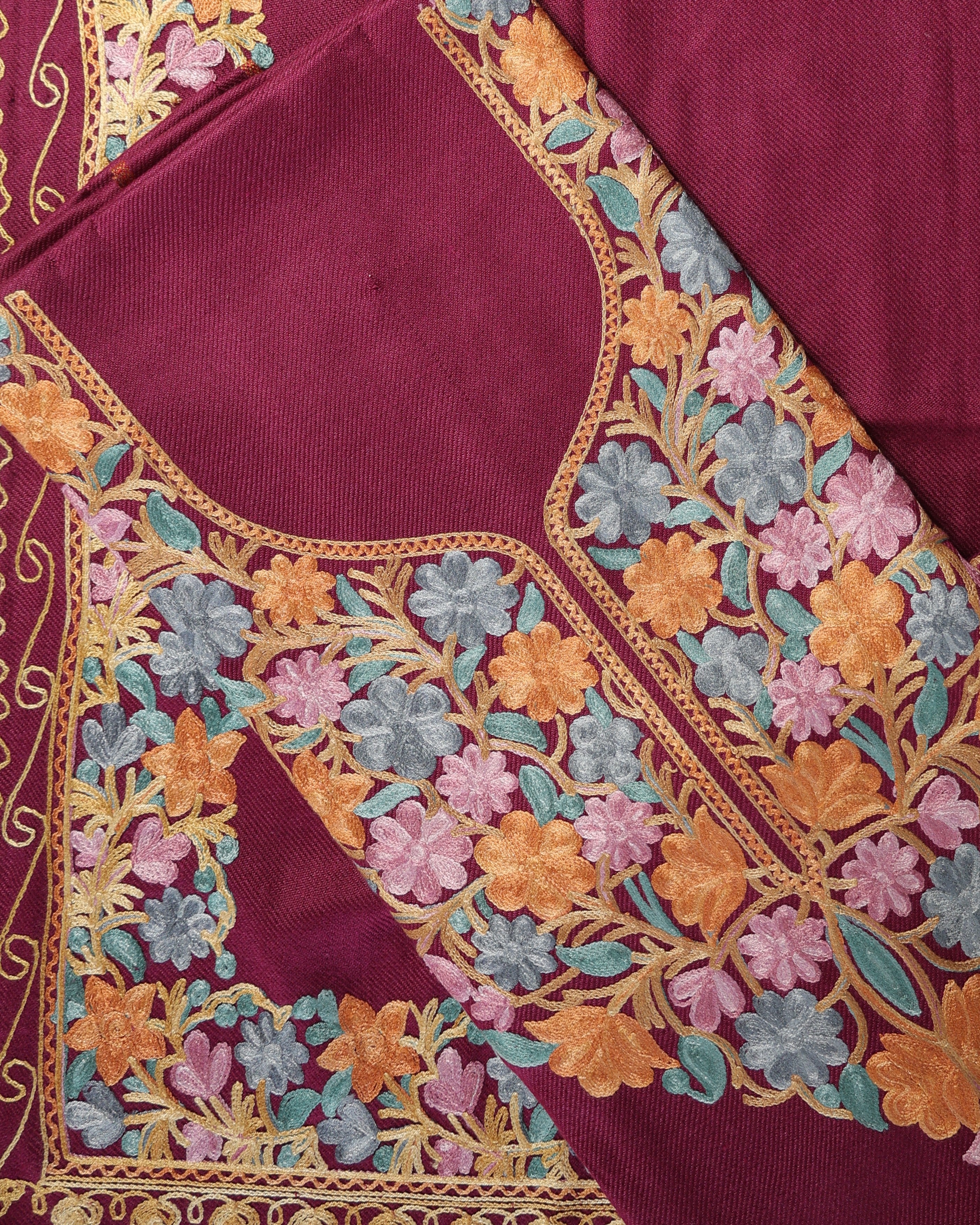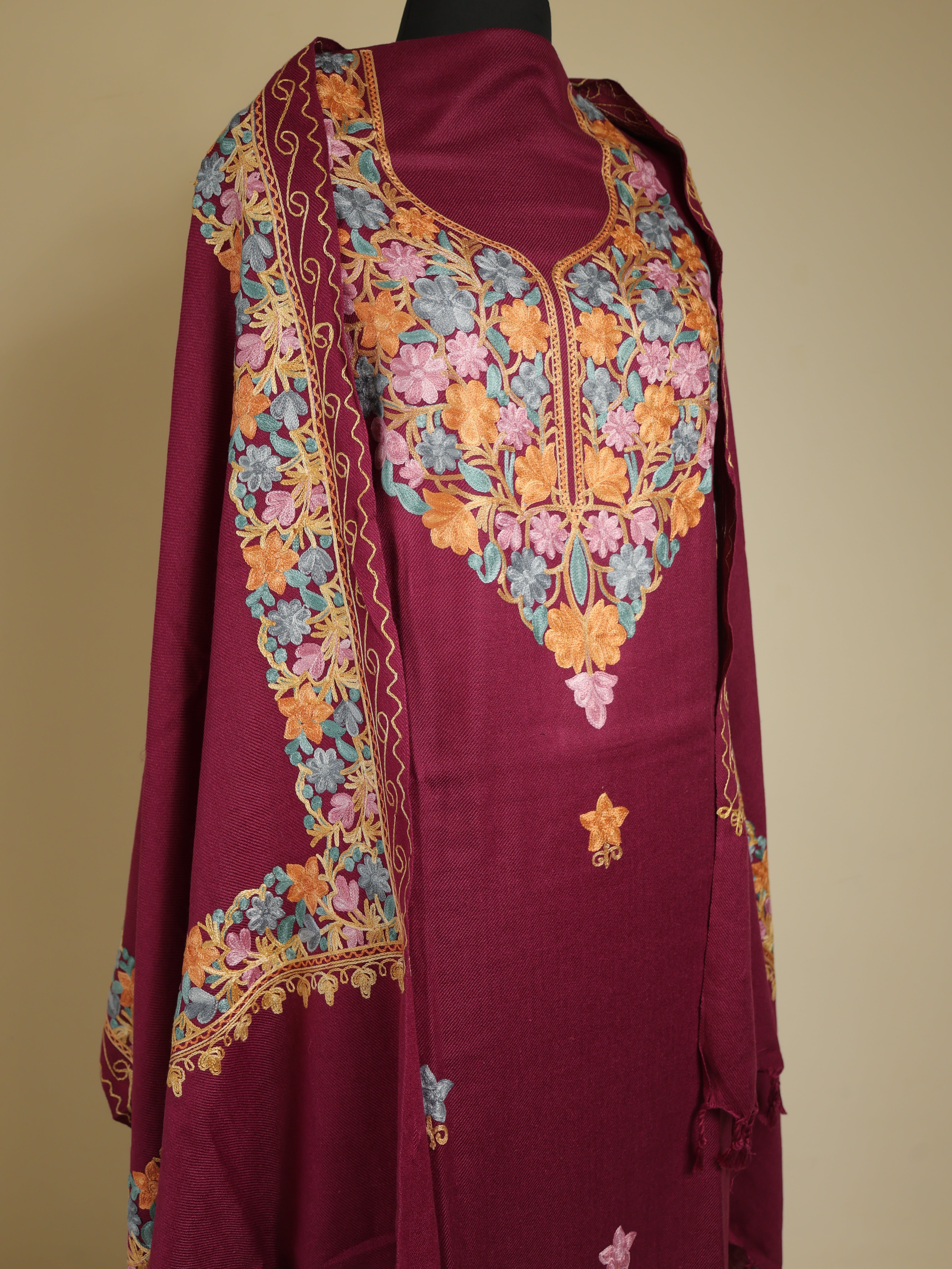 Kurta Fabric: Soft woollen blend with Kashmiri-style Aari embroidery on neckline and front