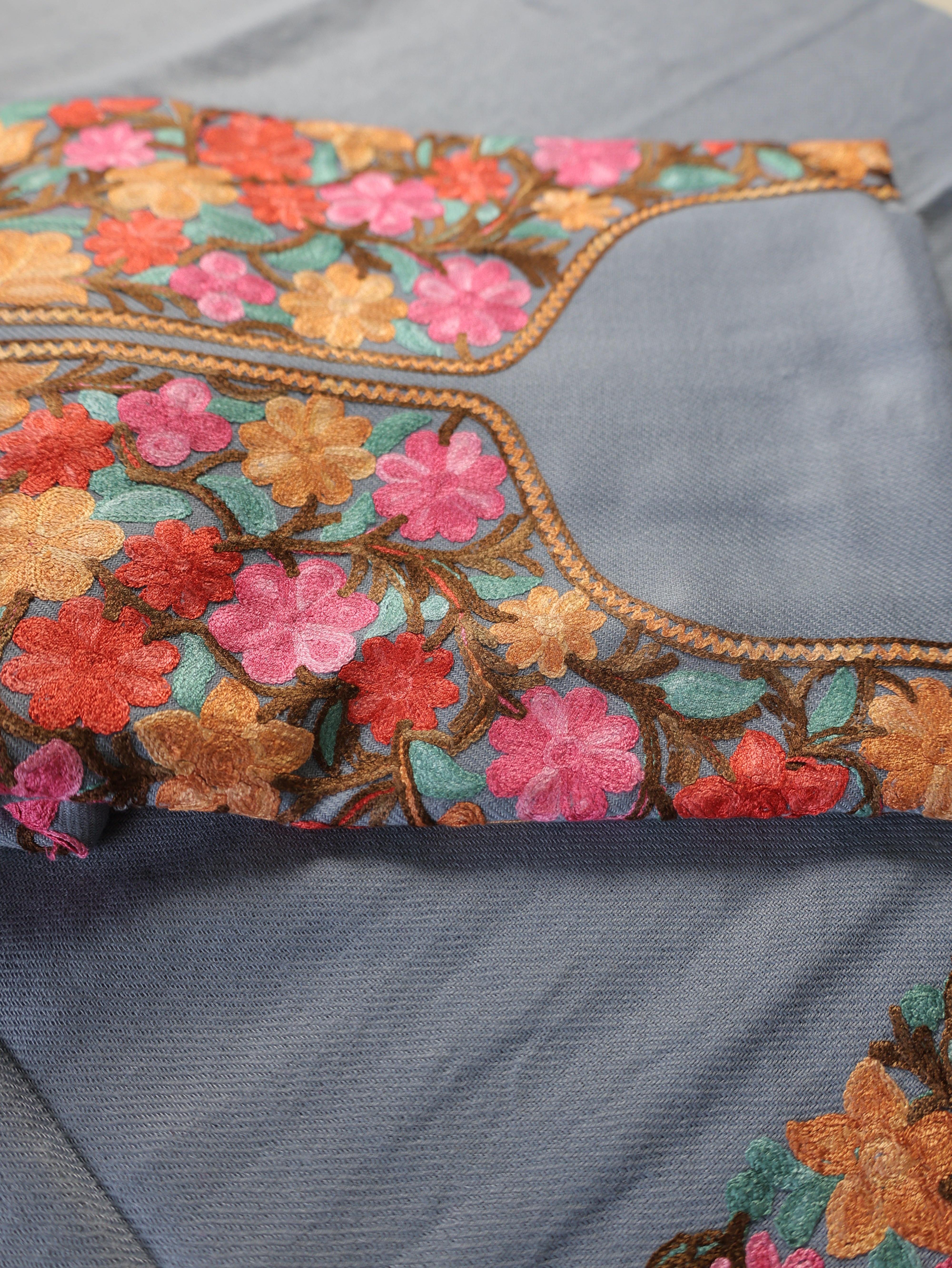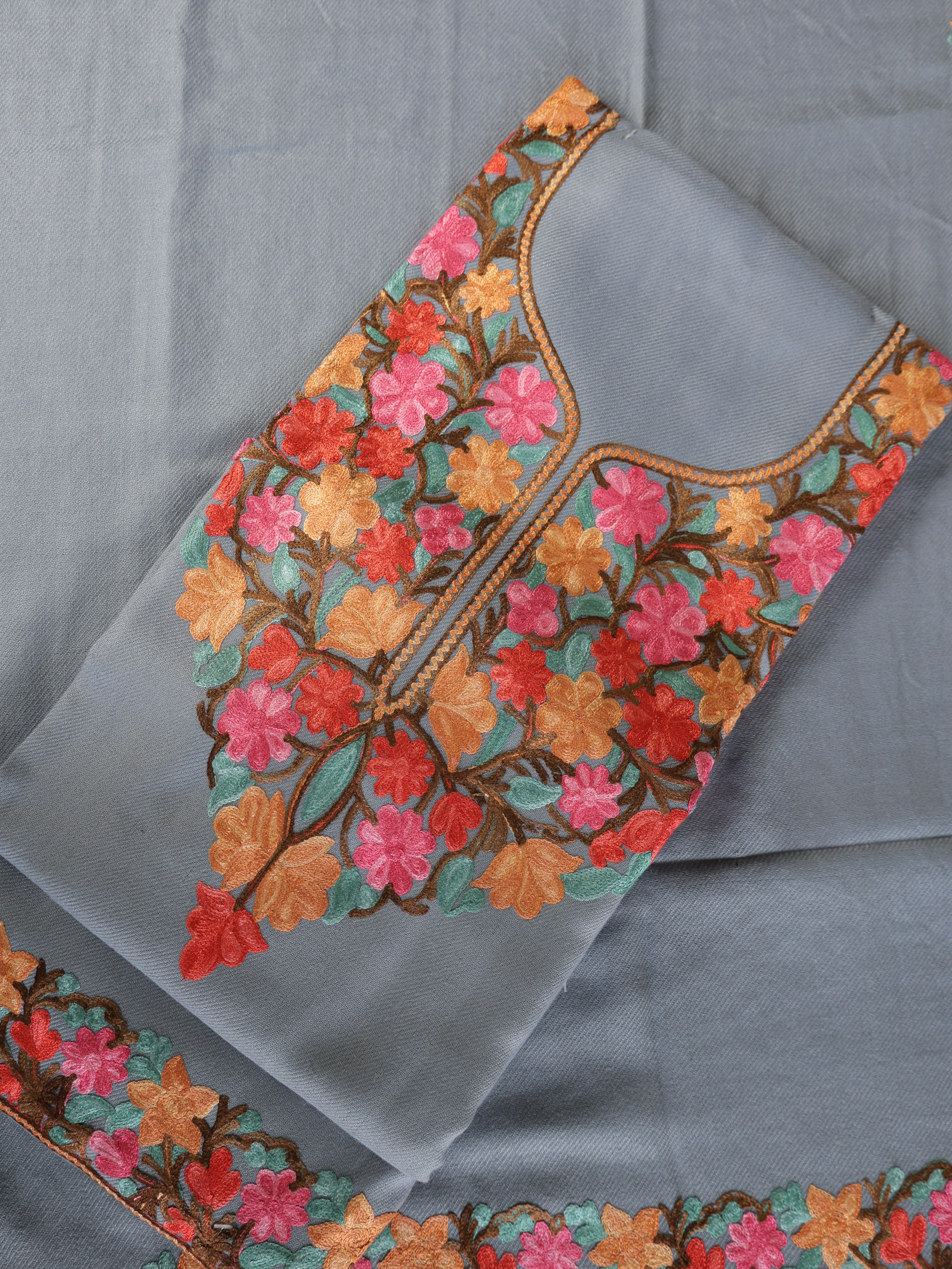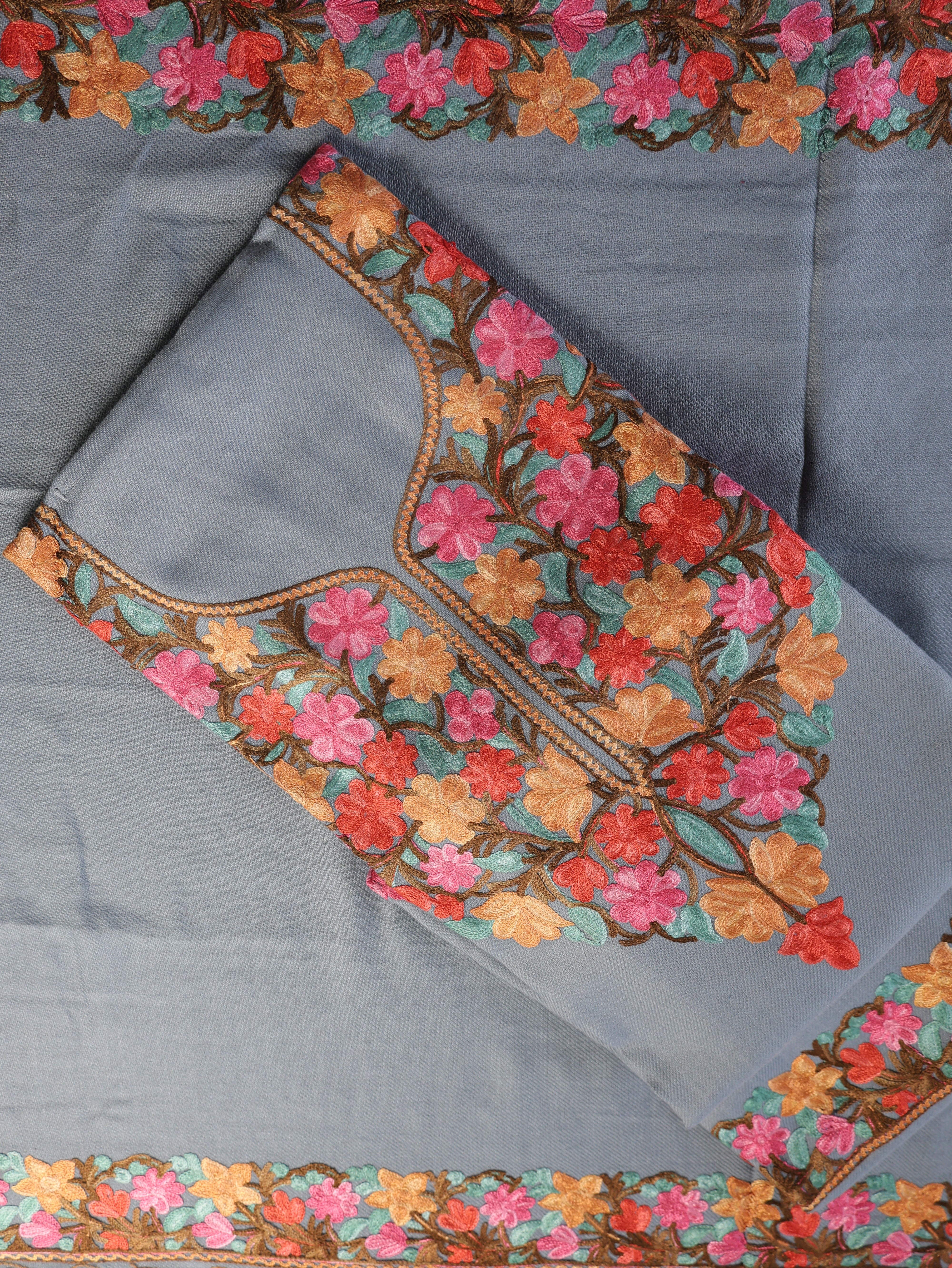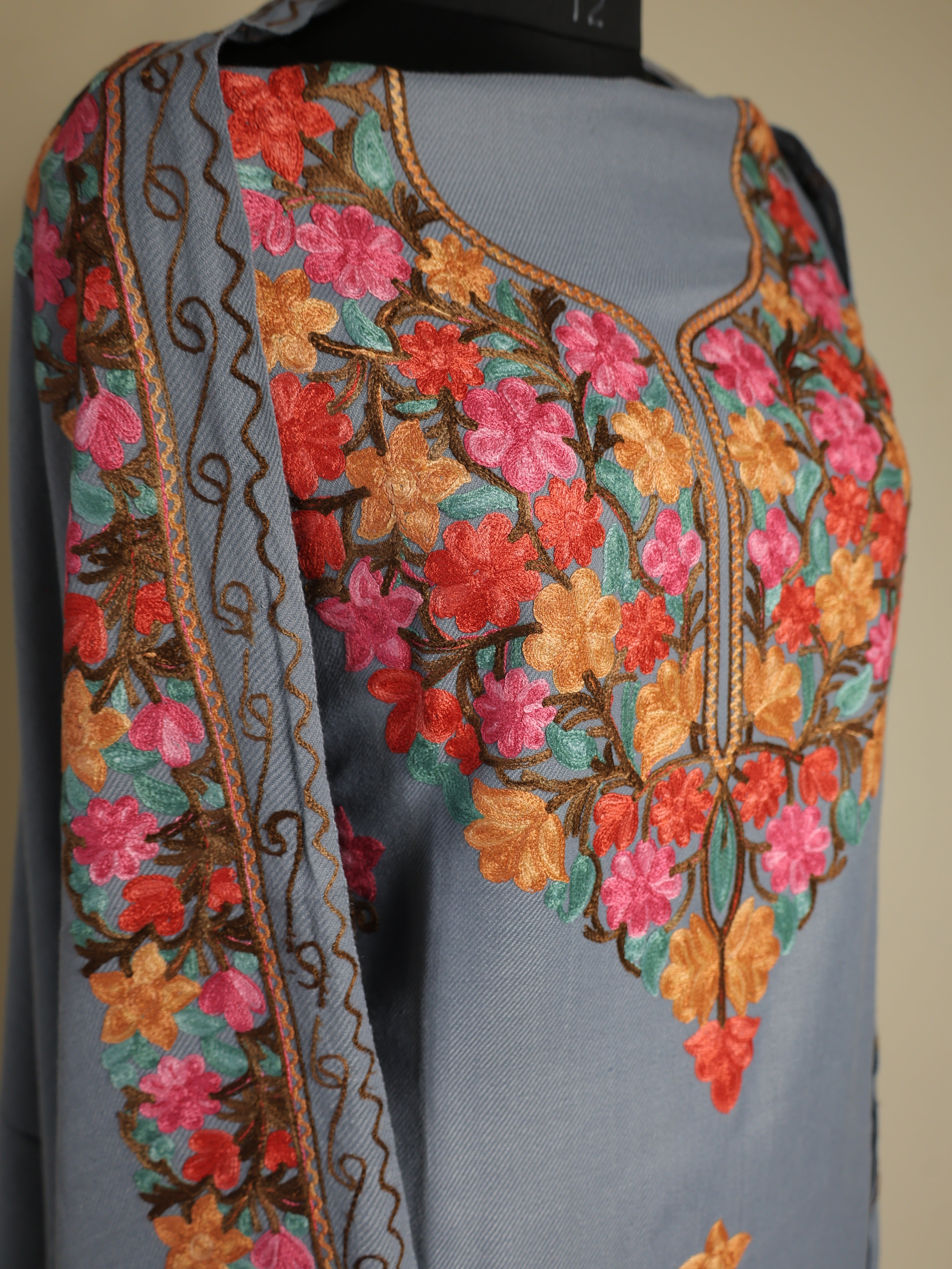 • Kurta Fabric: Soft woollen blend with Kashmiri-style Aari embroidery on neckline and front